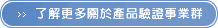 經驗豐富的專業團隊、國際知名認證機構的認可 產品驗證事業群擁有經驗豐富的專業團隊,並榮獲國際知名認證機構的認可,服務涵蓋工業、科學、家電、資訊、廣電、電信、無線電等領域,從零件、模組到產品的環球認證以及測試場地的規劃與設立等。 產品驗證事業群以多樣化的服務範疇及不斷引進國際先進的檢驗技術,透過全球化的同步資訊傳遞交流,讓您的產品透過我們有形無形的服務價值,在最短的時間內取得國際認證、行銷全球。 |